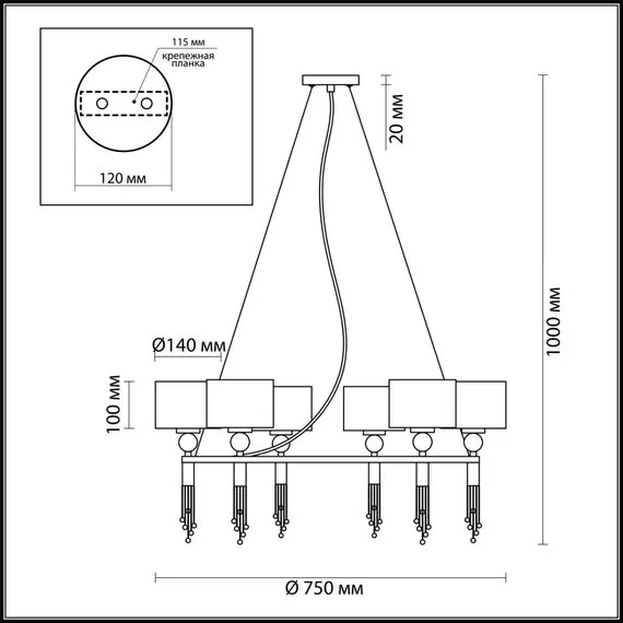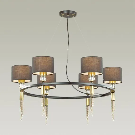 Артикул: 4516/6; 0043037; Бренд: Lumion; Коллекция: NEOCLASSI; Линия: SANTIAGO; Стиль: Neo Classic; Назначение: Люстра; место размещения: в гостиную; в спальню; Тип крепления: крепление на планке; Степень защиты: IP20; Общая мощность, W: 360; Площадь освещения, м2: 18; Напряжение питания, V: 220; Класс защиты: 1; Класс электро-безопасности: I; Температурный режим: 0...+40; Количество ламп: 6; Тип ламп: накаливания, Накаливания; Тип цоколя: E27; Мощность ламп, W: 6*60; Материал каркаса: металл, Металл; Материал плафона: текстиль, Текстиль; Поверхность каркаса: матовый; Поверхность плафона: матовый; Цвет: античная латунь, черный; Цвет каркаса: бронзовый; латунь; черный; Цвет плафона: черный, Черный, чёрный; Гарантия, мес: 30; высота: 1000; Диаметр, мм: 750; Вес, кг: 5,196; Вес упаковки, кг: 0,477; Длина упаковки, см: 67; Ширина упаковки, см: 65; Высота упаковки, см: 16; Объем упаковки, м3: 0,07518; Штрихкод: 4690344097437