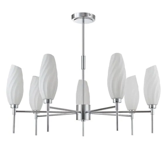 Артикул: 6519/7C; 0046851; Бренд: Lumion; Коллекция: MODERNI; Линия: SHIVON; Стиль: Neo Classic; Назначение: Люстра потолочная; место размещения: в гостиную; в спальню; Тип крепления: крепление на планке; Степень защиты: IP20; Общая мощность, W: 280; Площадь освещения, м2: 14; Напряжение питания, V: 220; Класс защиты: 1; Класс электро-безопасности: I; Температурный режим: 0...+40; Количество ламп: 7; Тип ламп: галогенная; Тип цоколя: G9; Мощность ламп, W: 7*40; Max мощность лампы, W: 40; Материал каркаса: металл, Металл; Материал плафона: стекло, Стекло; Поверхность каркаса: глянцевый; Поверхность плафона: матовый; Цвет: хром; Цвет каркаса: хром, Хром; Цвет плафона: белый, Белый; Гарантия, мес: 30; высота: 590; Диаметр, мм: 740; Вес, кг: 3,415; Вес упаковки, кг: 4,800; Длина упаковки, см: 44.5; Ширина упаковки, см: 26.5; Высота упаковки, см: 30; Объем упаковки, м3: 0,03538; Штрихкод: 4690344135245