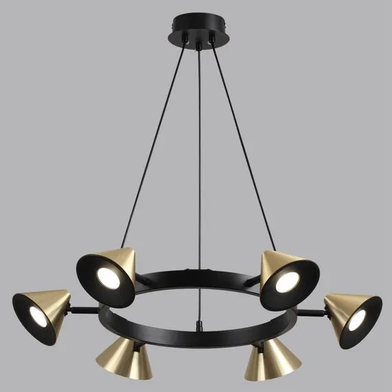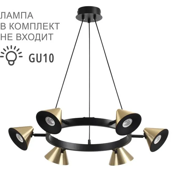 Артикул: 8233/6; 0048350; Бренд: Lumion; Коллекция: COMFI; Линия: LAMINA; Стиль: High-tech, High-Tech; Назначение: Подвесной светильник; место размещения: на кухню; в гостиную; в спальню; Тип крепления: крепление на планке; Степень защиты: IP20; Общая мощность, W: 42; Площадь освещения, м2: 8; Напряжение питания, V: 220; Класс защиты: 1; Класс электро-безопасности: I; Температурный режим: -5...+40; Количество ламп: 6; Тип ламп: светодиодная, Светодиодная; Тип цоколя: GU10; Мощность ламп, W: 6*7; Max мощность лампы, W: 7; Материал каркаса: металл, Металл; Материал плафона: металл, Металл; Поверхность каркаса: матовый; Поверхность плафона: глянцевый; Цвет: металл; Цвет каркаса: черный; золотой; Цвет плафона: Золотой, золотой; Гарантия, мес: 30; высота: 1000; Диаметр, мм: 635; Вес, кг: 3,100; Вес упаковки, кг: 3,787; Длина упаковки, см: 66; Ширина упаковки, см: 59; Высота упаковки, см: 14; Объем упаковки, м3: 0,05452; Штрихкод: 4690344152570