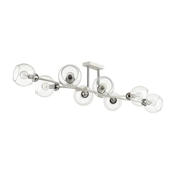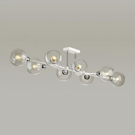 Артикул: 4517/8C; 0043053; Бренд: Lumion; Коллекция: MODERNI; Линия: ALANA; Стиль: Minimalism; Назначение: Люстра потолочная; место размещения: на кухню; Тип крепления: крепление на планке; Степень защиты: IP20; Общая мощность, W: 320; Площадь освещения, м2: 16; Напряжение питания, V: 220; Класс защиты: 1; Класс электро-безопасности: I; Температурный режим: 0...+40; Количество ламп: 8; Тип ламп: накаливания, Накаливания; Тип цоколя: E14; Мощность ламп, W: 8*40; Материал каркаса: металл, Металл; Материал плафона: стекло, Стекло; Поверхность каркаса: матовый; Поверхность плафона: глянцевый; Цвет: белый, хром; Цвет каркаса: белый, Белый; Цвет плафона: прозрачный, Прозрачный; Гарантия, мес: 30; Длина, мм: 1110; Ширина, мм: 460; высота: 240; Вес, кг: 3,529; Вес упаковки, кг: 0,550; Длина упаковки, см: 99; Ширина упаковки, см: 36; Высота упаковки, см: 23; Объем упаковки, м3: 0,08791; Штрихкод: 4690344097987