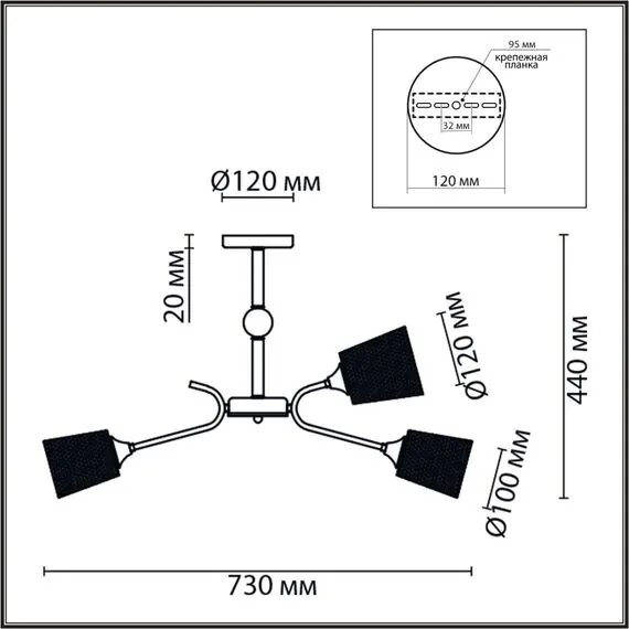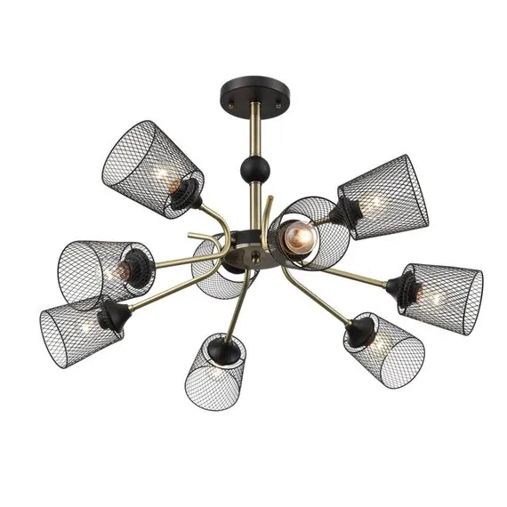 Артикул: 8191/9C; 0048231; Бренд: Lumion; Коллекция: COUNTY; Линия: ABRIS; Стиль: Loft; Назначение: Люстра потолочная; место размещения: в спальню; в гостиную; Тип крепления: крепление на планке; Степень защиты: IP20; Общая мощность, W: 540; Площадь освещения, м2: 4; Напряжение питания, V: 220; Класс защиты: 1; Класс электро-безопасности: I; Температурный режим: -5...+40; Количество ламп: 9; Тип ламп: накаливания, Накаливания; Тип цоколя: E27; Мощность ламп, W: 9*60; Max мощность лампы, W: 60; Материал каркаса: металл, Металл; Материал плафона: металл, Металл; Поверхность каркаса: матовый; Поверхность плафона: матовый; Цвет: металл; Цвет каркаса: черный; античная бронза; латунь; Цвет плафона: черный, Черный, чёрный; Гарантия, мес: 30; высота: 440; Диаметр, мм: 730; Вес, кг: 2,100; Вес упаковки, кг: 0,422; Длина упаковки, см: 35; Ширина упаковки, см: 15; Высота упаковки, см: 23; Объем упаковки, м3: 0,01208; Штрихкод: 4690344150804