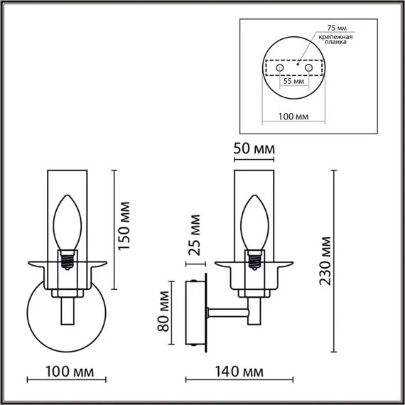 Артикул: 6554/1W; 0047477; Бренд: Lumion; Коллекция: CLASSI; Линия: MADONNA; Стиль: Classic; Назначение: Бра; место размещения: на кухню; в гостиную; в спальню; в прихожую; на лестницу; Тип крепления: крепление на планке; Степень защиты: IP20; Общая мощность, W: 40; Площадь освещения, м2: 2; Напряжение питания, V: 220; Класс защиты: 1; Класс электро-безопасности: I; Температурный режим: 0...+40; Количество ламп: 1; Тип ламп: накаливания, Накаливания; Тип цоколя: E14; Мощность ламп, W: 1*40; Max мощность лампы, W: 40; Материал каркаса: металл, Металл; Материал плафона: стекло, Стекло; Поверхность каркаса: полуматовый; Поверхность плафона: глянцевый; Цвет: бронза, коньячный; Цвет каркаса: бронзовый, Бронзовый; Цвет плафона: коричневый, Коричневый; Гарантия, мес: 30; Длина, мм: 100; высота: 230; Отступ от стены, мм: 140; Вес, кг: 0,550; Вес упаковки, кг: 2,084; Длина упаковки, см: 44; Ширина упаковки, см: 43; Высота упаковки, см: 22; Объем упаковки, м3: 0,00100; Штрихкод: 4690344143752