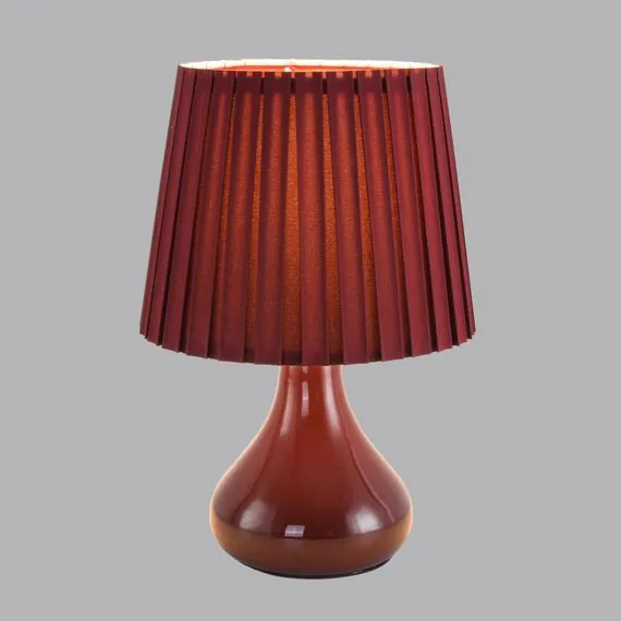 Артикул: 8185/1T; 0048215; Бренд: Lumion; Коллекция: COUNTY; Линия: NAINA; Стиль: Modern; Назначение: Настольная лампа; место размещения: в гостиную; в спальню; Степень защиты: IP20; Общая мощность, W: 40; Площадь освещения, м2: 2; Напряжение питания, V: 220; Класс защиты: 2; Класс электро-безопасности: II; Температурный режим: 0...+40; Тип выключателя: выключатель на шнуре; Количество ламп: 1; Тип ламп: накаливания, Накаливания; Тип цоколя: E14; Мощность ламп, W: 1*40; Max мощность лампы, W: 40; Материал каркаса: керамика, Керамика; Материал плафона: текстиль, Текстиль; Поверхность каркаса: глянцевый; Поверхность плафона: матовый; Цвет: бордовый; Цвет каркаса: цветной; Цвет плафона: красный, Красный; Гарантия, мес: 30; Длина, мм: 180; Ширина, мм: 180; высота: 270; Вес, кг: 0,477; Вес упаковки, кг: 2,103; Длина упаковки, см: 58; Ширина упаковки, см: 39.5; Высота упаковки, см: 40.6; Объем упаковки, м3: 0,00675; Штрихкод: 4690344155182